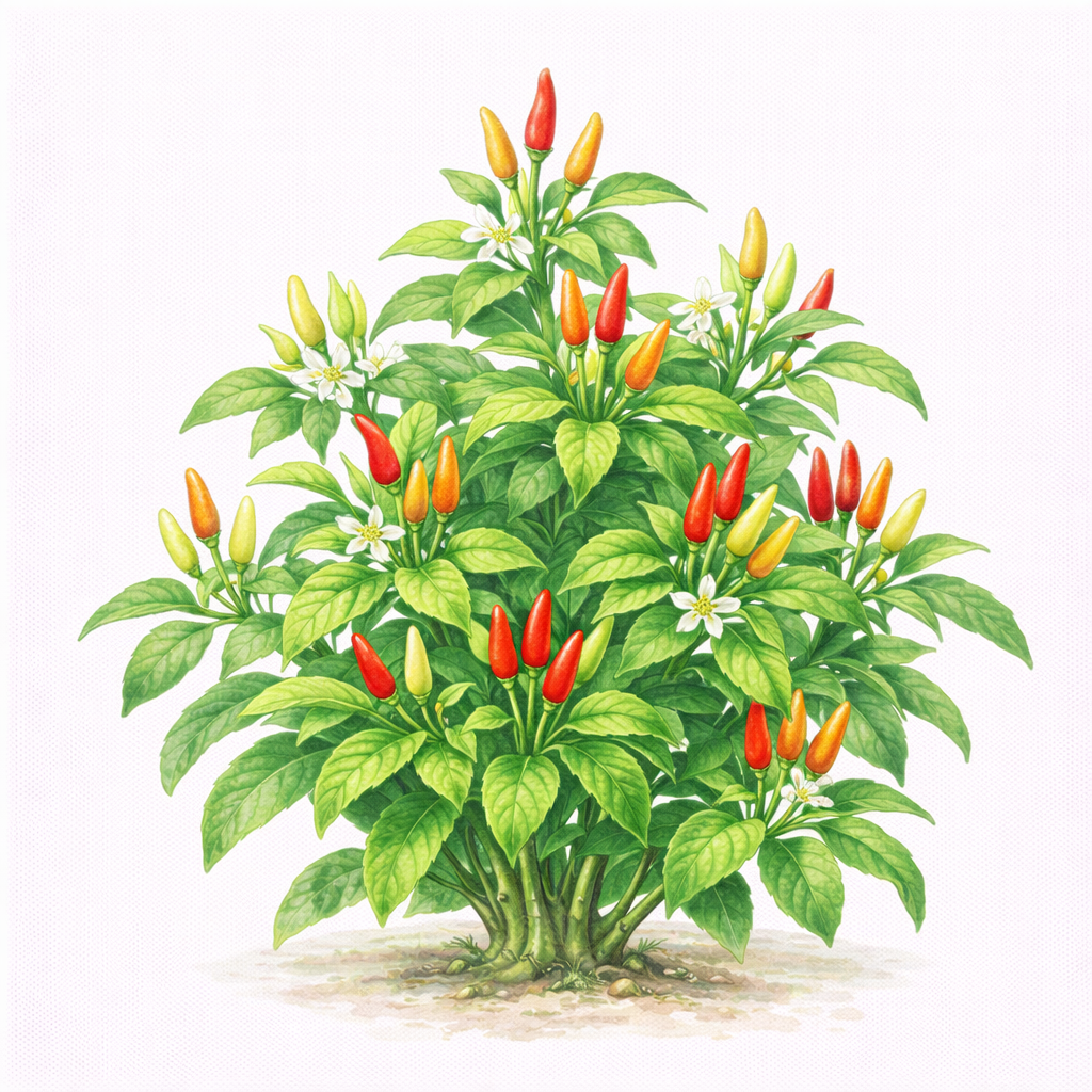Small, upright chilies grown for spicy sauce production.